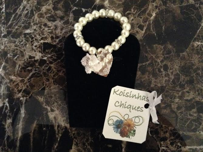 Pulseira de Pérolas com pingente feito com cortiça e renda.